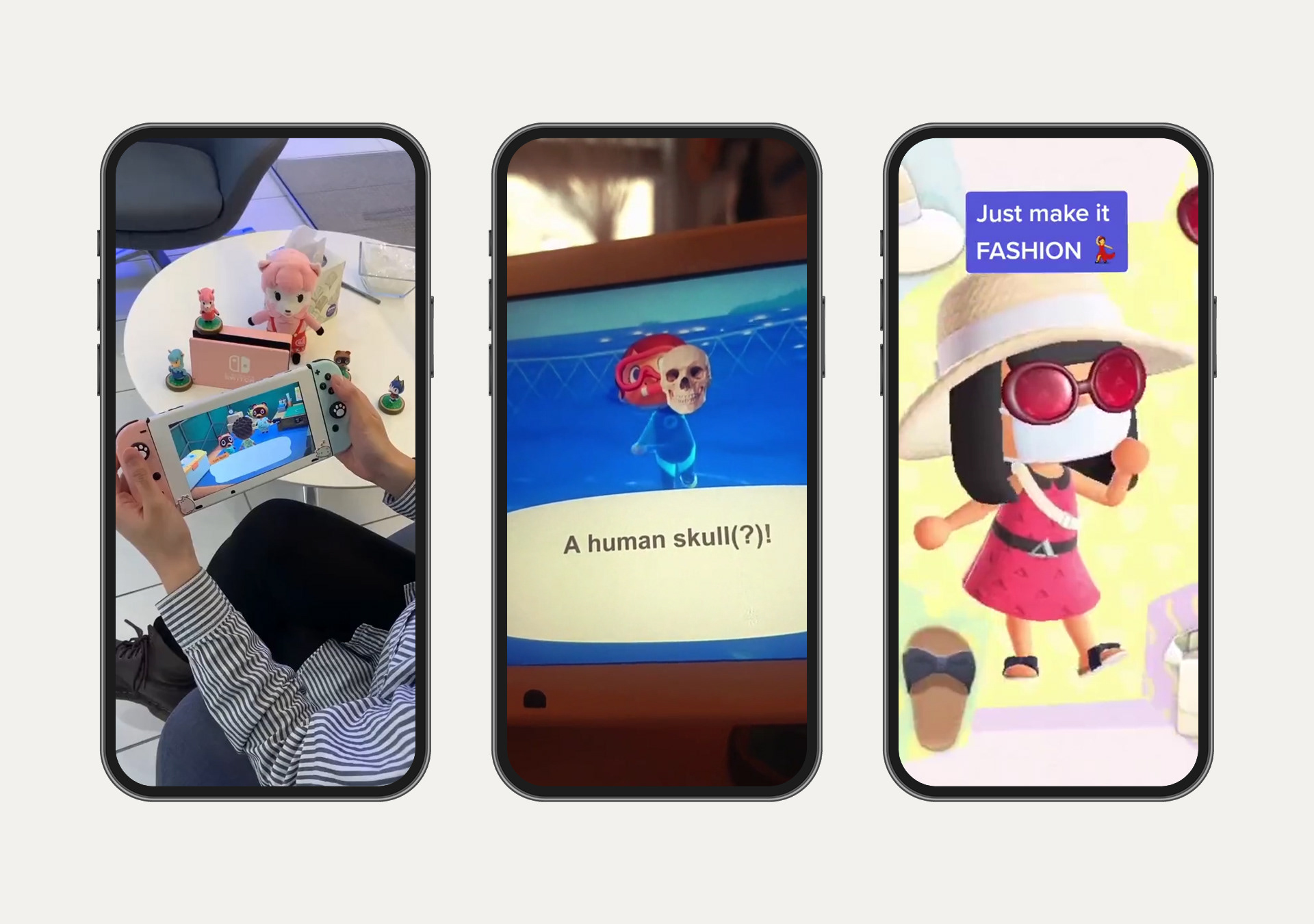 I took part in the content direction of much of the TikTok channel; I capitalized on the virality of Animal Crossing: New Horizons, creating several pieces of content through a combination of animation and motion graphics, tracking, live shooting, and pushing the limitations of the game's actual mechanics.